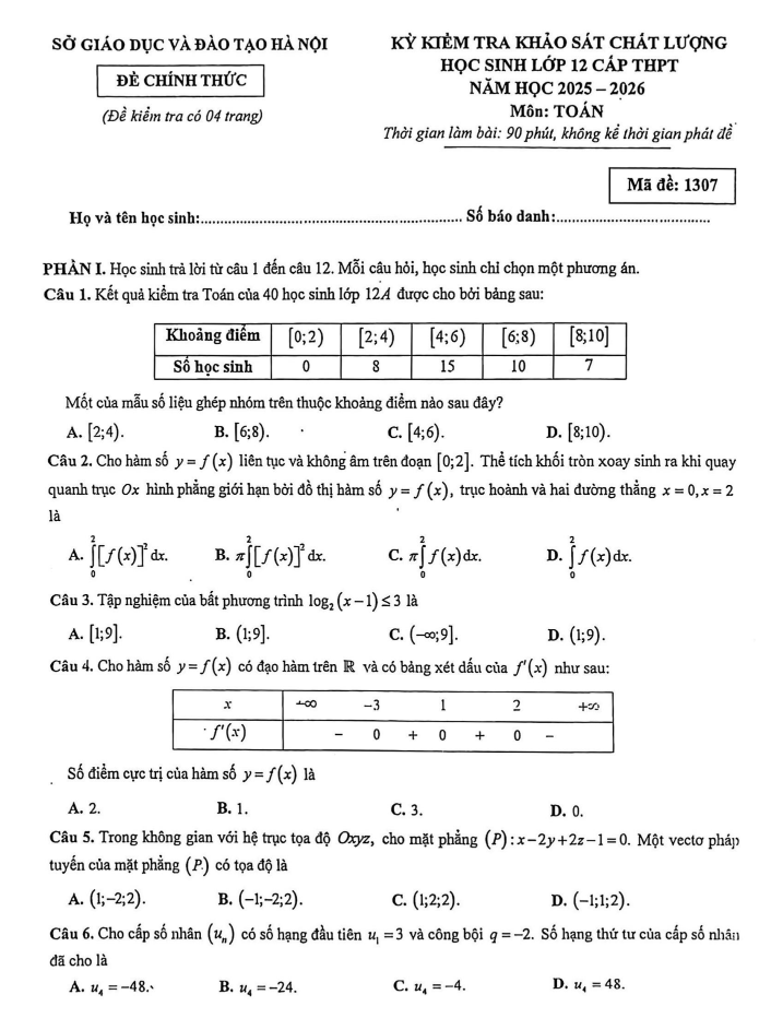 Đề thi thử Toán THPT 2026 – Sở GDĐT Hà Nội