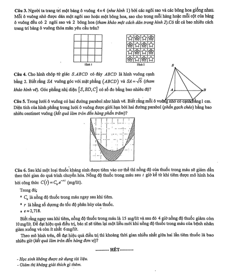 • Học sinh không được sử dụng tài liệu.