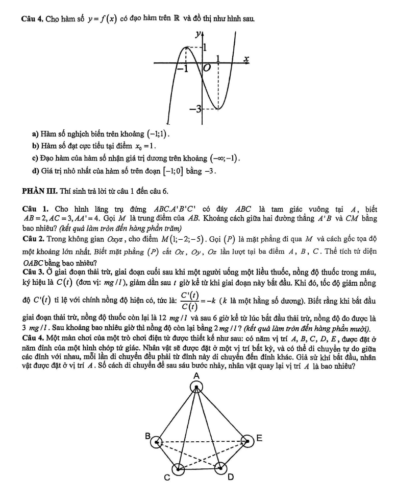 PHẦN III. Thí sinh trả lời từ câu 1 đến câu 6.