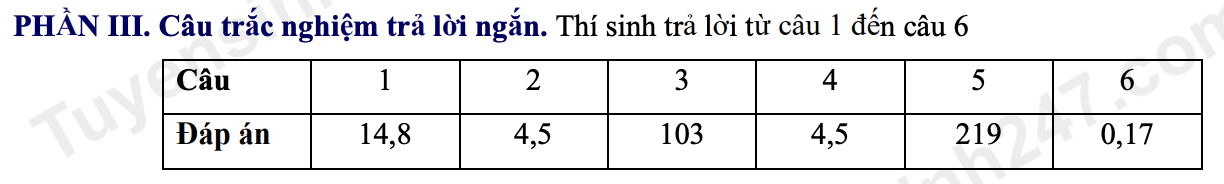 PHẦN III. Câu trắc nghiệm yêu cầu trả lời ngắn. Thì sinh trả lời tới câu 1 đến câu 6.