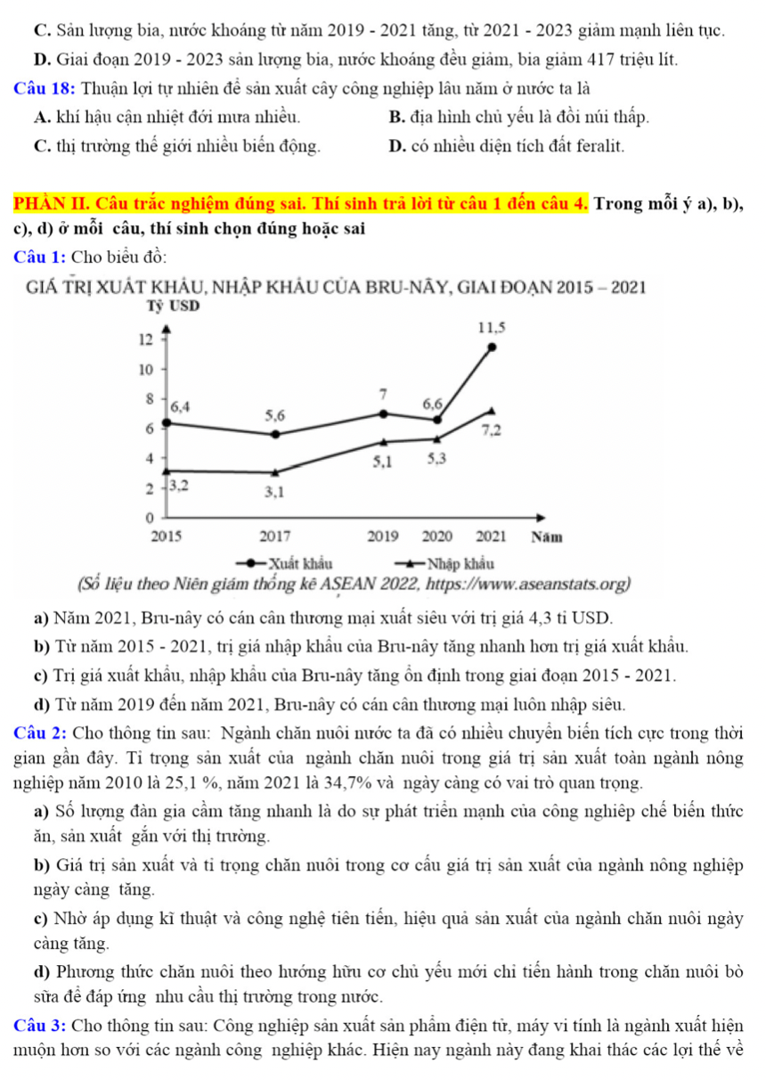 a) Năm 2021, Bru-nây có cán cân thương mại xuất siêu với trị giá 4,3 tỉ USD.
