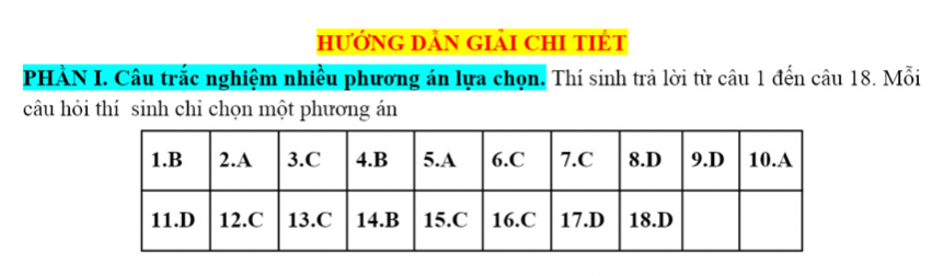 PHẦN I. Câu trắc nghiệm nhiều phương án lựa chọn. Thí sinh trả lời từ câu 1 đến câu 18. Mỗi câu hỏi thí sinh chỉ chọn một phương án