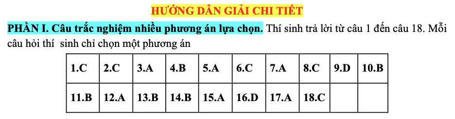 Thí sinh trả lời từ câu 1 đến câu 18. Mỗi câu hỏi thí sinh chỉ chọn một phương án.