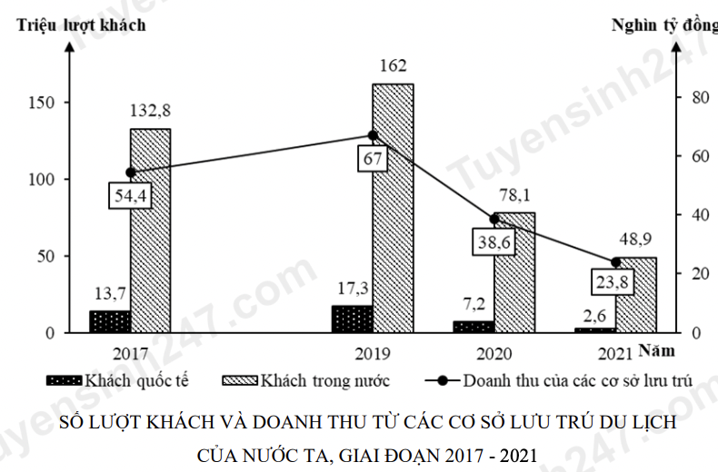 d) Khách trong nước giảm mạnh chủ yếu do ảnh hưởng của dịch Covid-19.