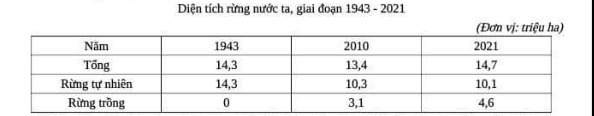 d) Biểu đồ tròn là dạng biểu đồ thích hợp nhất để thể hiện diện tích rừng của nước ta, giai đoạn 1943 – 2021.