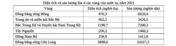 Tính năng suất lúa của Bắc Trung Bộ và Duyên hải Nam Trung Bộ năm 2021 (làm tròn kết quả đến hàng đơn vị của tạ/ha)