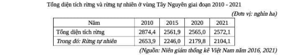 Câu 4. Tổng diện tích rừng của Tây Nguyên năm 2021 là 2 572,7 nghìn ha, trong đó diện tích rừng tự nhiên là 2104,1 nghìn ha. Vậy diện rừng trồng của Tây Nguyên chiếm bao nhiêu % trong tổng diện tích rừng của vùng? (làm tròn kết quả đến số thập phân thứ nhất của %)