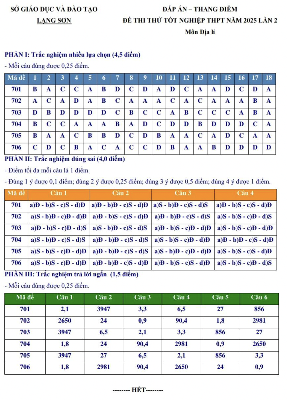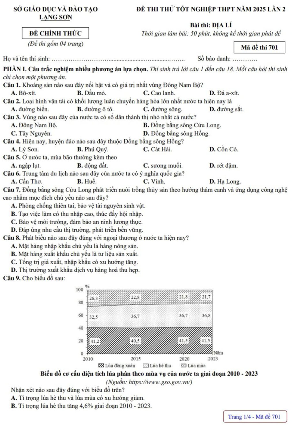 Đề thi thử tốt nghiệp THPT 2025 môn Địa lí – Sở GDĐT Lạng Sơn (Lần 2)