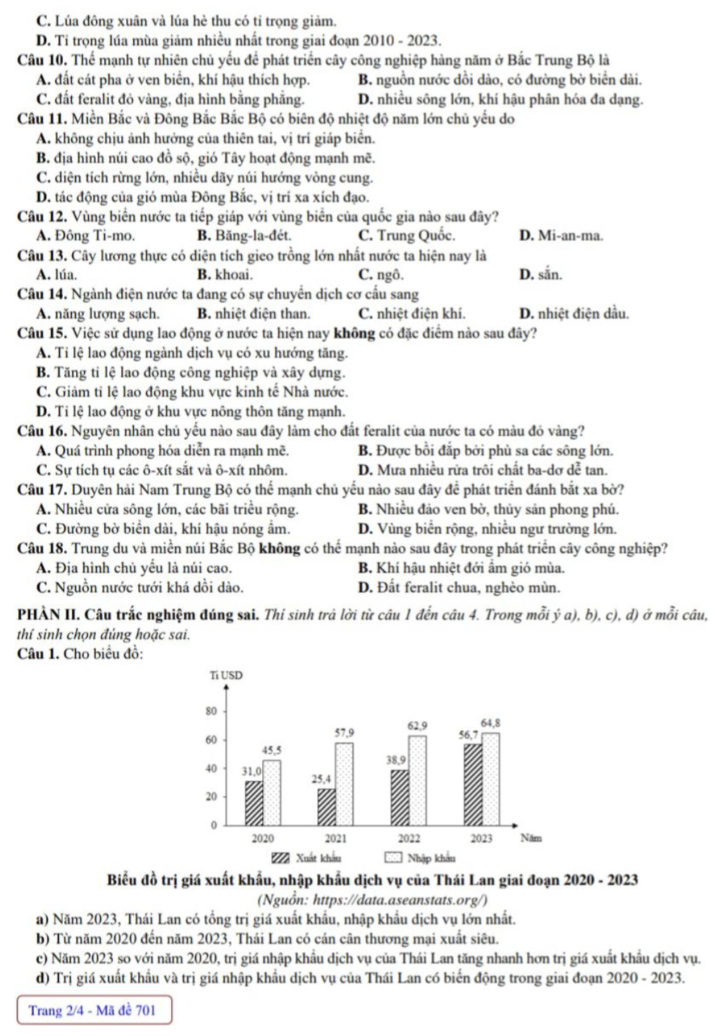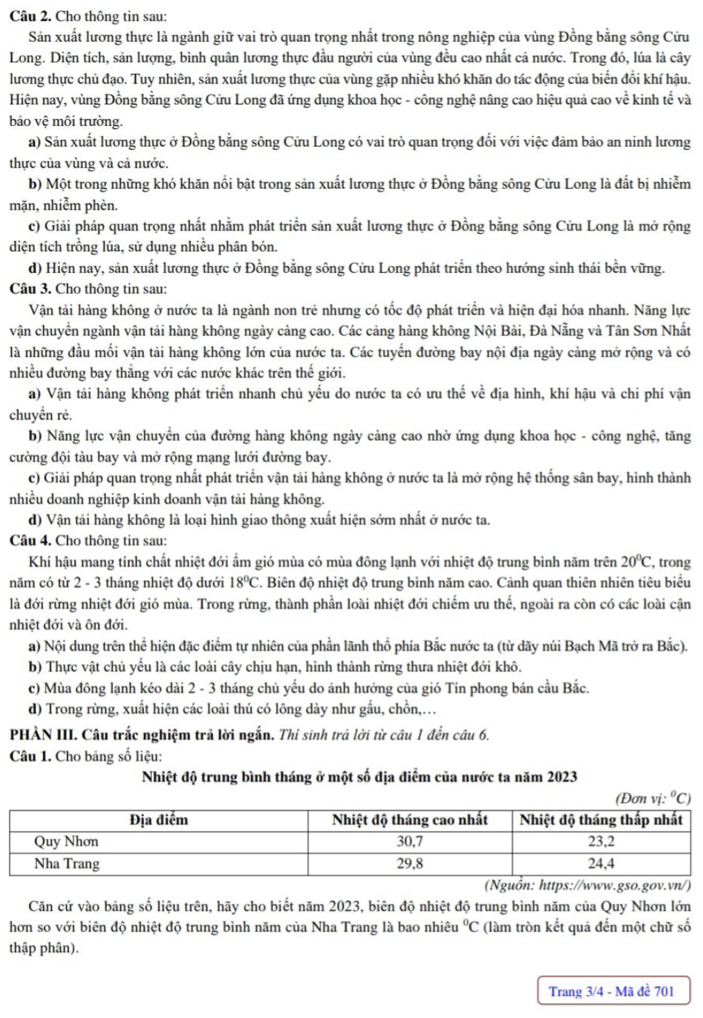 Đề thi bao phủ toàn bộ chương trình Địa lí lớp 12, tập trung vào các chuyên đề quan trọng như địa lí tự nhiên, dân cư, các ngành kinh tế, phân bố lãnh thổ, cùng với nội dung chuyên sâu về chuyển dịch cơ cấu kinh tế, phát triển vùng kinh tế trọng điểm, và kỹ năng thực hành sử dụng Atlat Địa lí Việt Nam – phần không thể thiếu trong các đề thi chính thức.