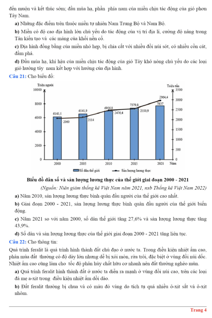 d) Số dân và sản lượng lương thực của thế giới giai đoạn 2000 – 2021 tăng liên tục.