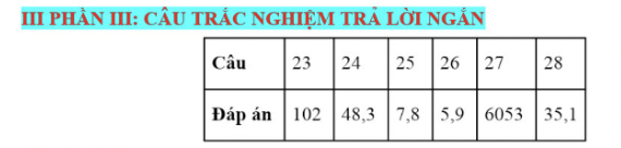 PHẦN III: CÂU TRẮC NGHIỆM TRẢ LỜI NGẮN