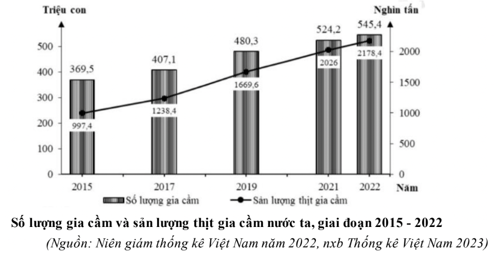 D. Giai đoạn 2015 – 2022, sản lượng thịt gia cầm tăng 2,2 lần.