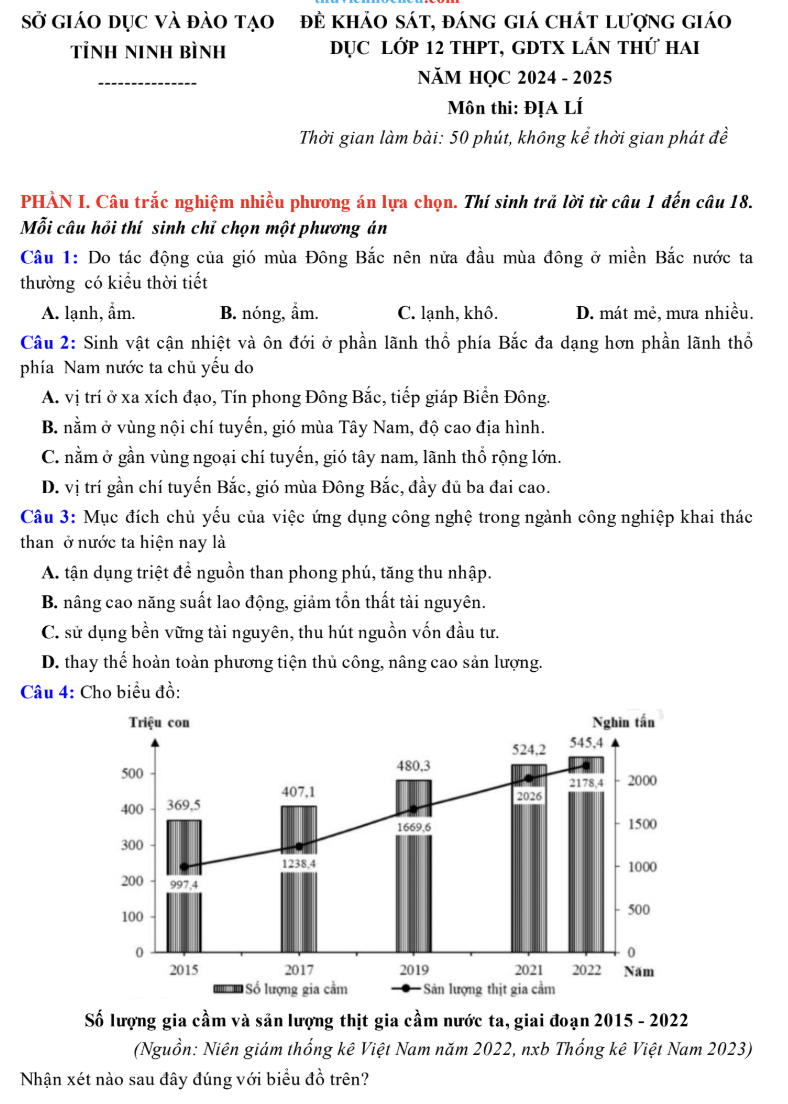 Câu 18: Phát biểu nào sau đây không đúng khi nói về nguyên nhân làm cho chăn nuôi gia cầm ở nước ta tăng mạnh?