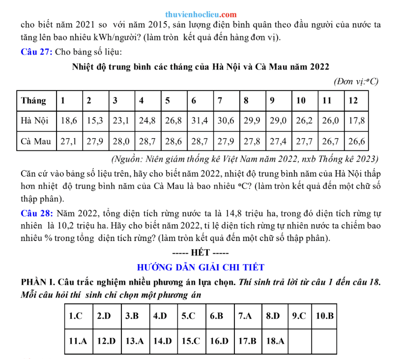 Thí sinh trả lời từ câu 1 đến câu 18. Mỗi câu hỏi thí sinh chỉ chọn một phương án.
