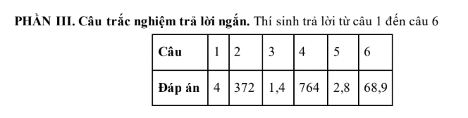 PHẦN III. CÂU TRẮC NGHIỆM TRẢ LỜI NGẮN