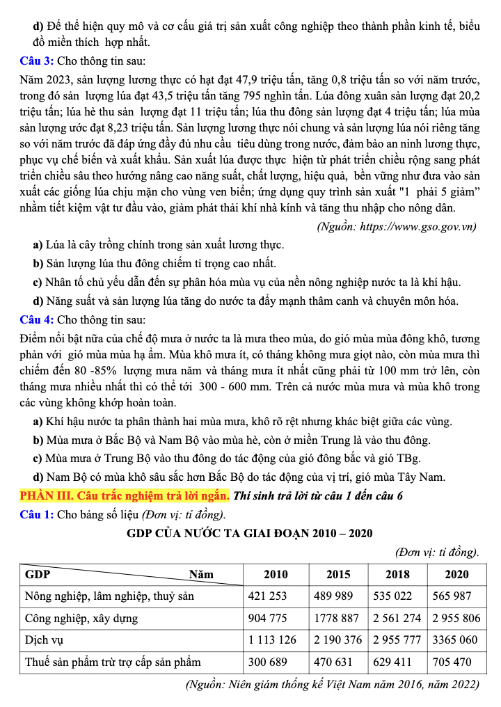 – Thí sinh thực hiện nghiêm túc Quy chế thi. KHÔNG được sử dụng Atlat Địa Lí.