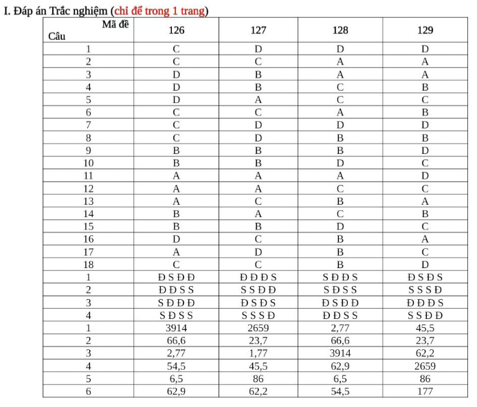 PHẦN I. (4,5 điểm): Câu trắc nghiệm nhiều phương án lựa chọn. Thí sinh trả lời từ câu 1 đến câu 18. Mỗi câu hỏi thí sinh chỉ chọn một phương án.