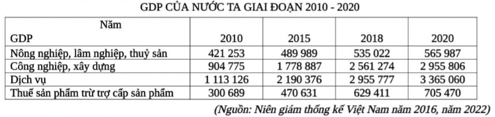 GDP của nước ta năm 2020 gấp bao nhiêu lần so với năm2010? (Kết quả làm tròn đến số thập phân thứ hai).