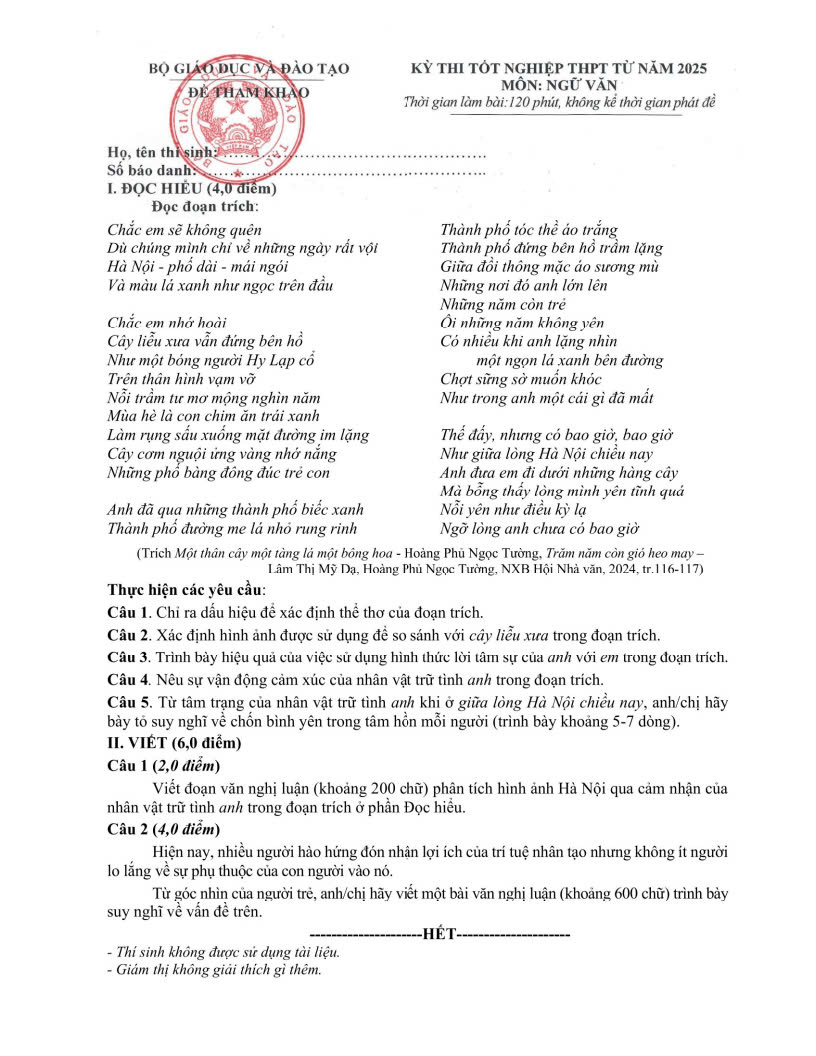 Như vậy, Đề thi thử tốt nghiệp THPT 2025 môn Ngữ Văn – Đề tham khảo Bộ GD là bắt buộc đối với tất cả thí sinh.