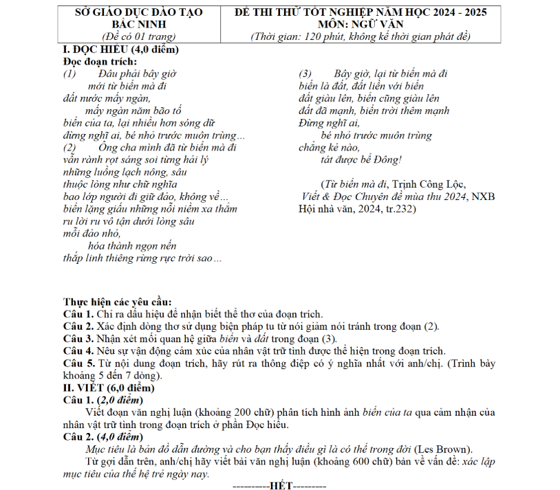 Đề thi thử tốt nghiệp THPT 2025 môn Ngữ Văn – Sở Bắc Ninh
