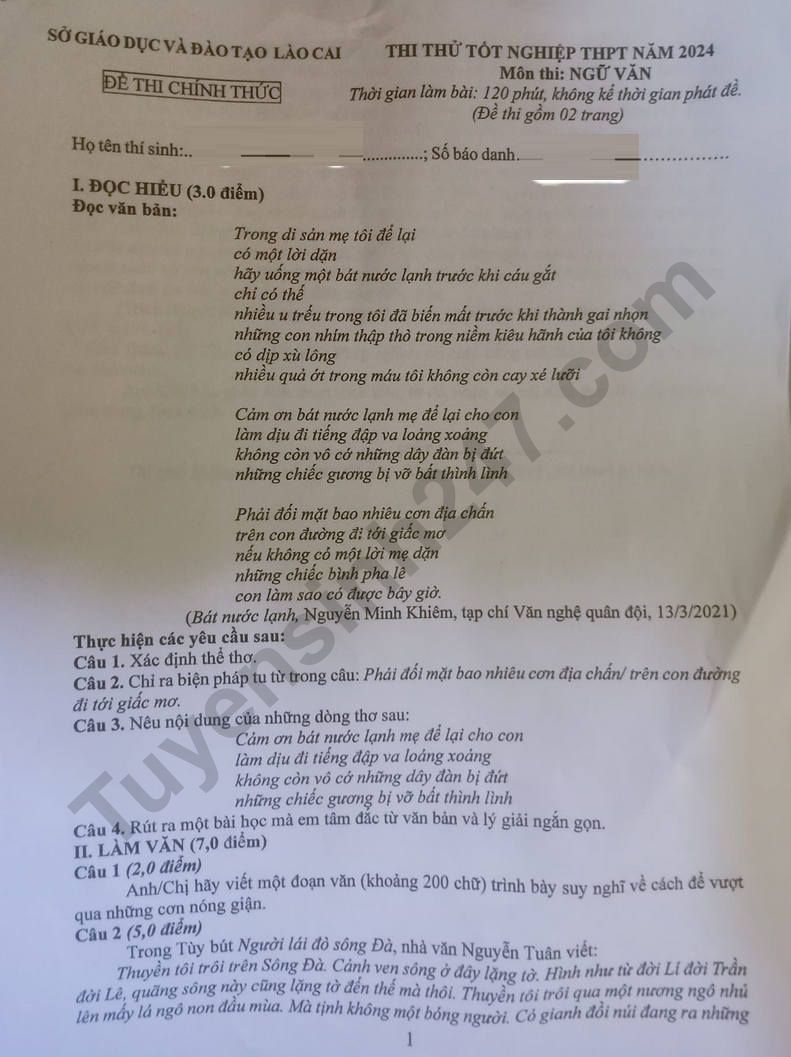Đề thi thử tốt nghiệp THPT 2025 môn Ngữ Văn – Sở GD Lào Cai là một trong những đề thi thuộc Bộ đề thi tuyển sinh vào đại học – Môn Ngữ Văn. Đây là một trong những bộ đề quan trọng nằm trong chuyên mục Tổng hợp đề thi thử môn Ngữ Văn THPT QG , được biên soạn bám sát đề minh họa của Bộ Giáo dục và Đào tạo, nhằm hỗ trợ học sinh lớp 12 ôn tập toàn diện, rèn luyện kỹ năng làm bài và tự tin chinh phục kỳ thi tốt nghiệp THPT năm 2025.