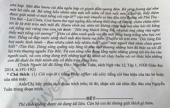 (Trích Người lái đò Sông Đà – Nguyễn Tuân, sách Ngữ văn 12, Tập 1, NXB Giáo dục 2014, tr.191-192)