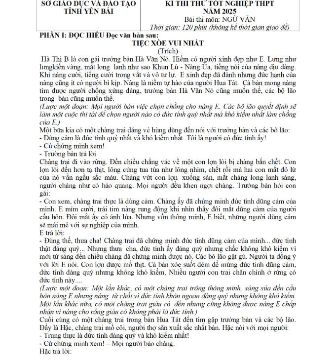Đề thi thử tốt nghiệp THPT 2025 môn Ngữ Văn Sở GD YÊN BÁI