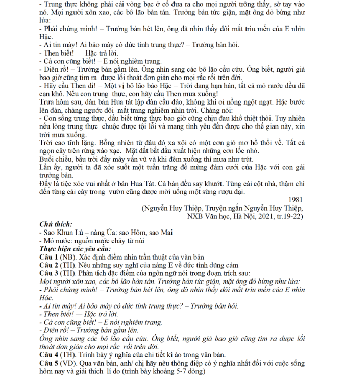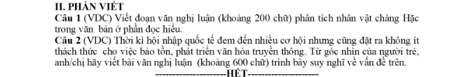 Câu 1 (VDC) Viết đoạn văn nghị luận (khoảng 200 chữ) phân tích nhân vật chàng Hặc trong văn bản ở phần đọc hiểu.