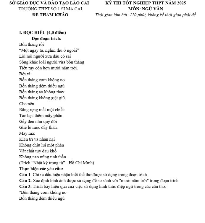 Đề thi thử tốt nghiệp THPT 2025 môn Ngữ Văn – THPT Si Ma Cai – Lào Cai