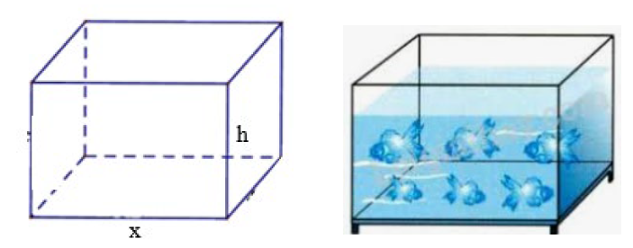 Một khách hàng đặt một người thợ làm một chiếc bể hình hộp chữ nhật không có nắp, đáy là hình vuông có cạnh là x và chiều cao của bể là h.