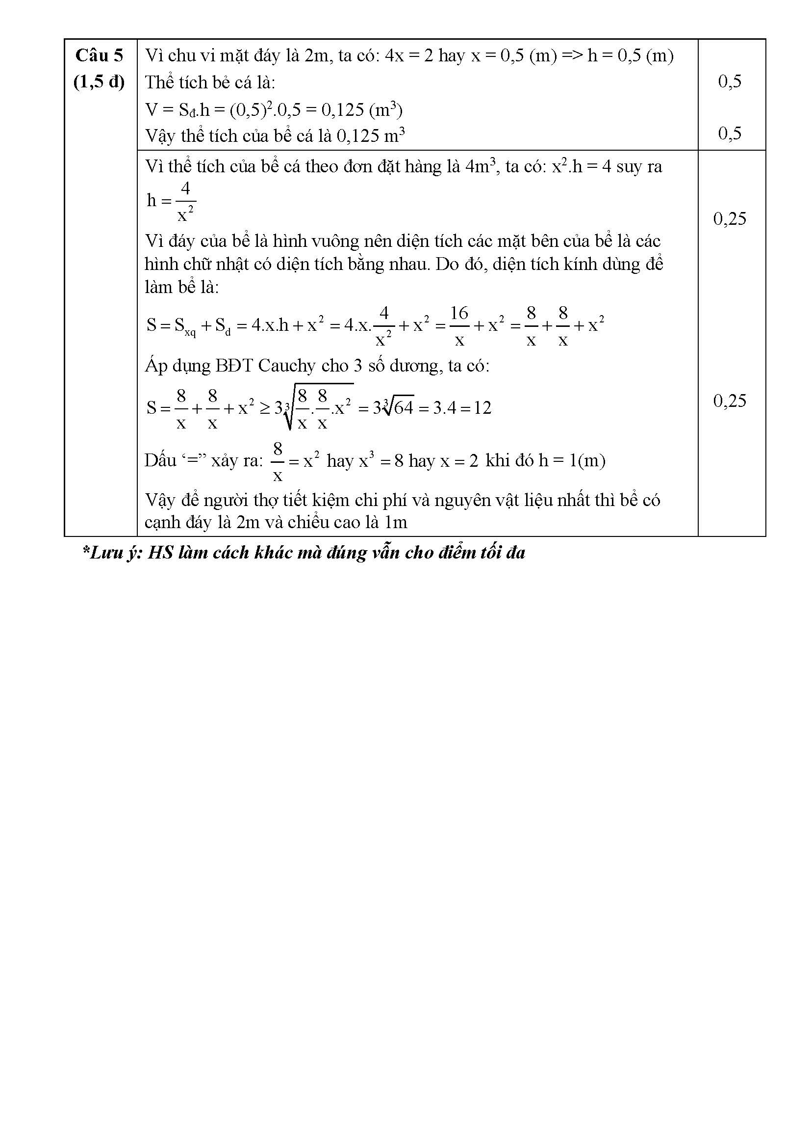 b) Theo đơn đặt hàng của khách thì bể cá được làm bằng kính trong suốt và phải chứa được 4m³ nước. Hỏi chiều dài của cạnh đáy và chiều cao của bể bằng bao nhiêu để người thợ tiết kiệm chi phí và nguyên vật liệu nhất?