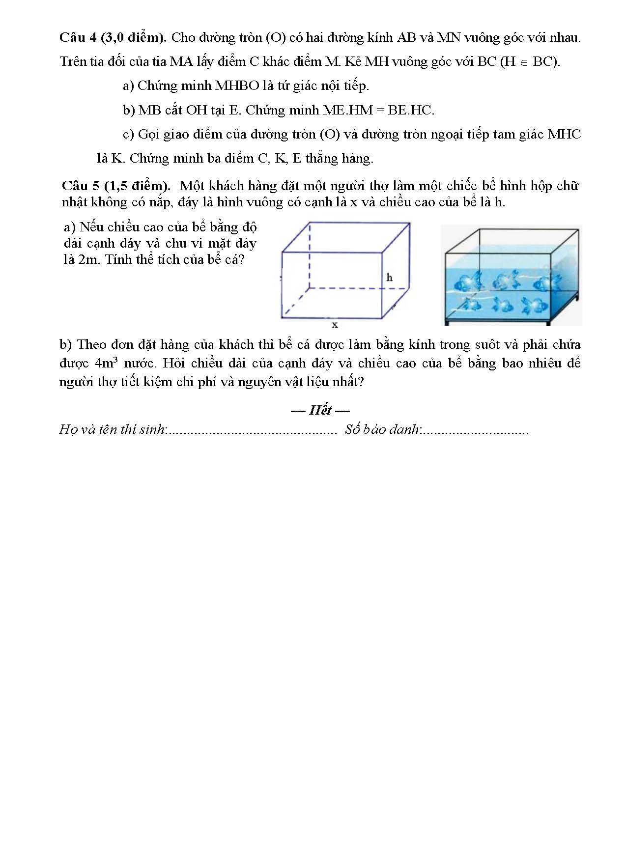 - Thời gian làm bài: 120 phút (không kể thời gian phát đề)