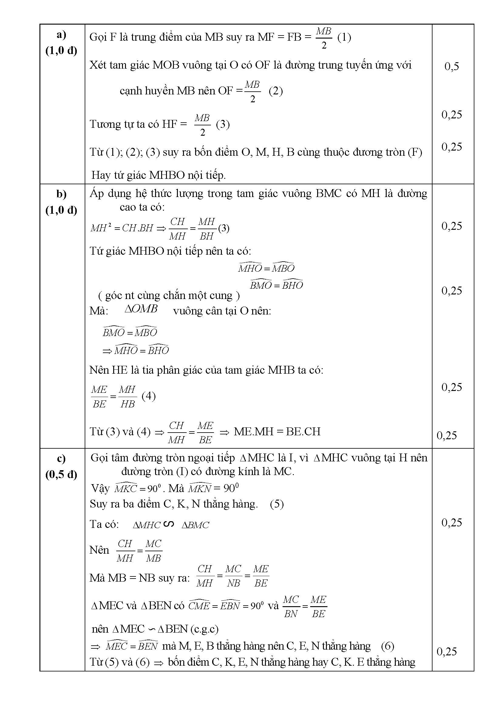c) Gọi giao điểm của đường tròn (O) và đường tròn ngoại tiếp tam giác MHC là K. Chứng minh ba điểm C, K, E thẳng hàng.