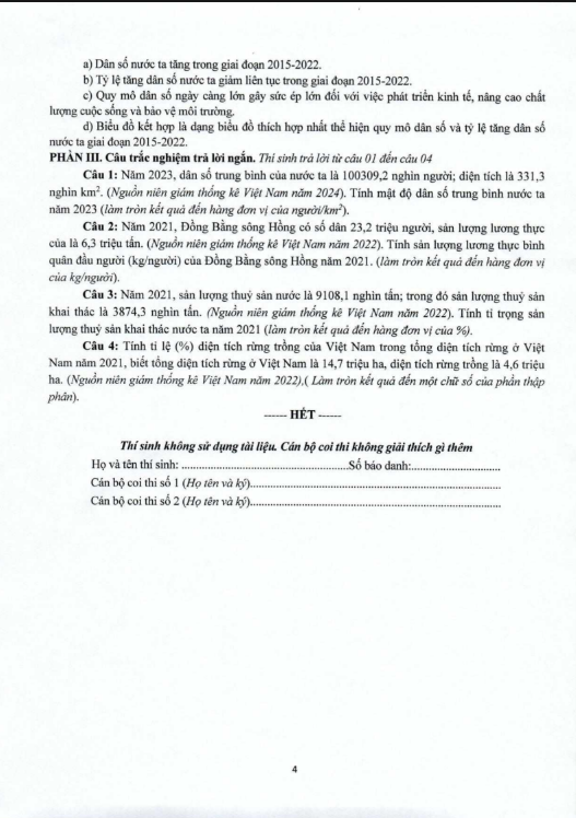 Thí sinh không sử dụng tài liệu. Cán bộ coi thi không giải thích gì thêm.