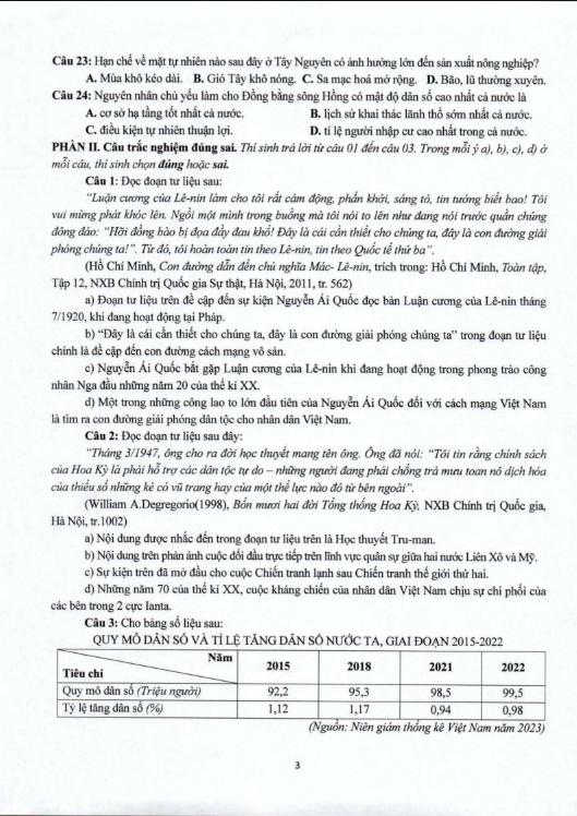 Câu 23: Hạn chế về mặt tự nhiên nào sau đây ở Tây Nguyên có ảnh hưởng lớn đến sản xuất nông nghiệp?
